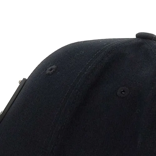 чёрная фурнитура с логотипом, люверсы для вентиляции, изогнутый козырёк