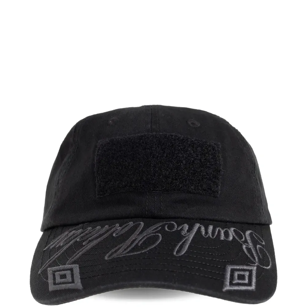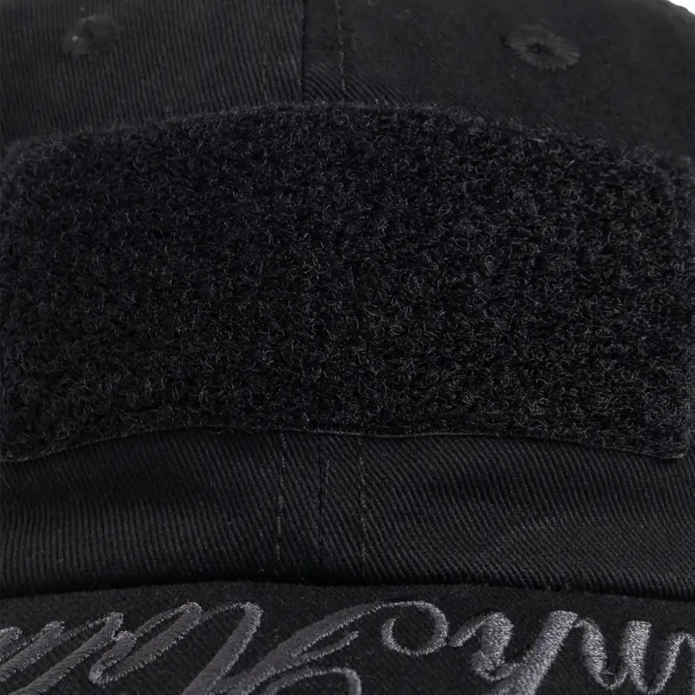 чёрная хлопковая бейсболка с вышитым логотипом, изогнутым козырьком и регулируемым ремешком сзади
