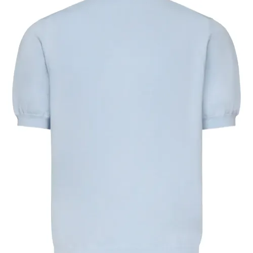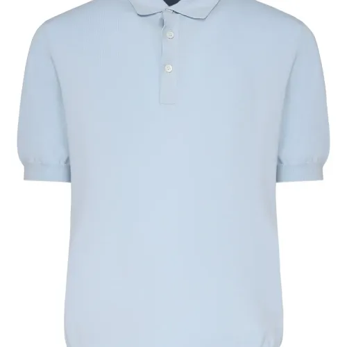 светло-голубой хлопок застежка на пуговицы спереди короткие рукава вязаный манжет воротник поло