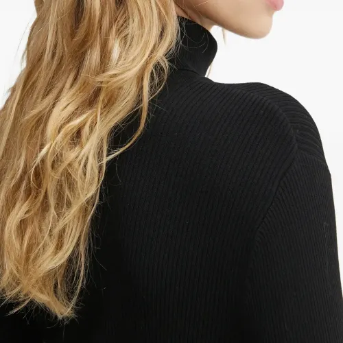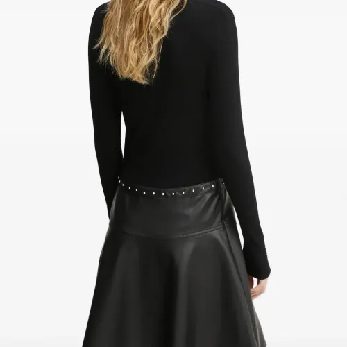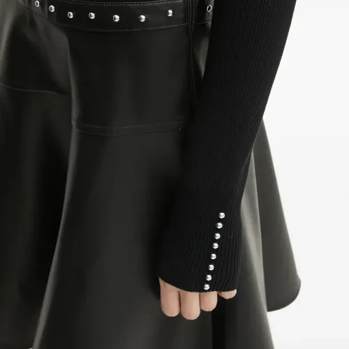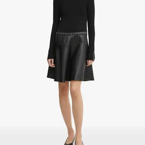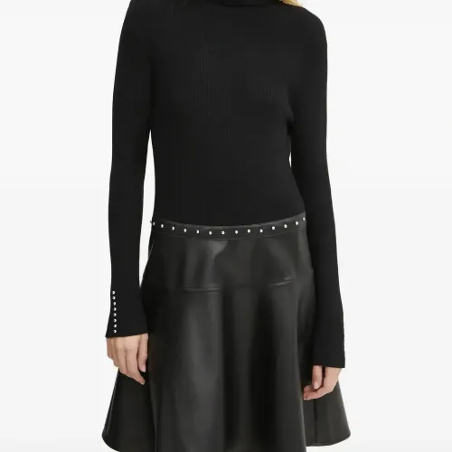 черная вязаная юбка А-силуэта с отделкой жемчугом, длинные рукава, воротник-гольф