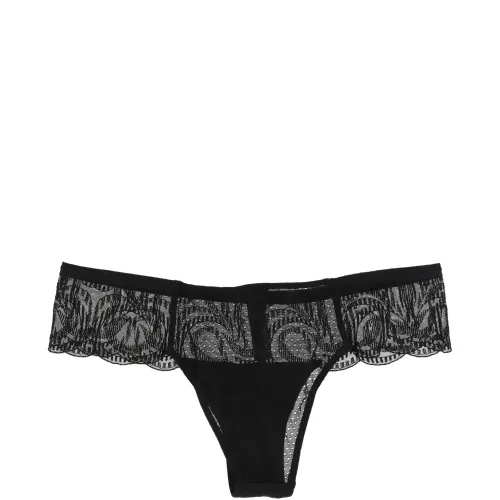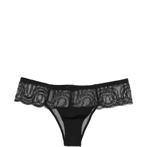 черные кружевные трусики с цветочным узором и волнистой отделкой