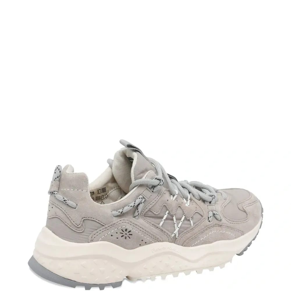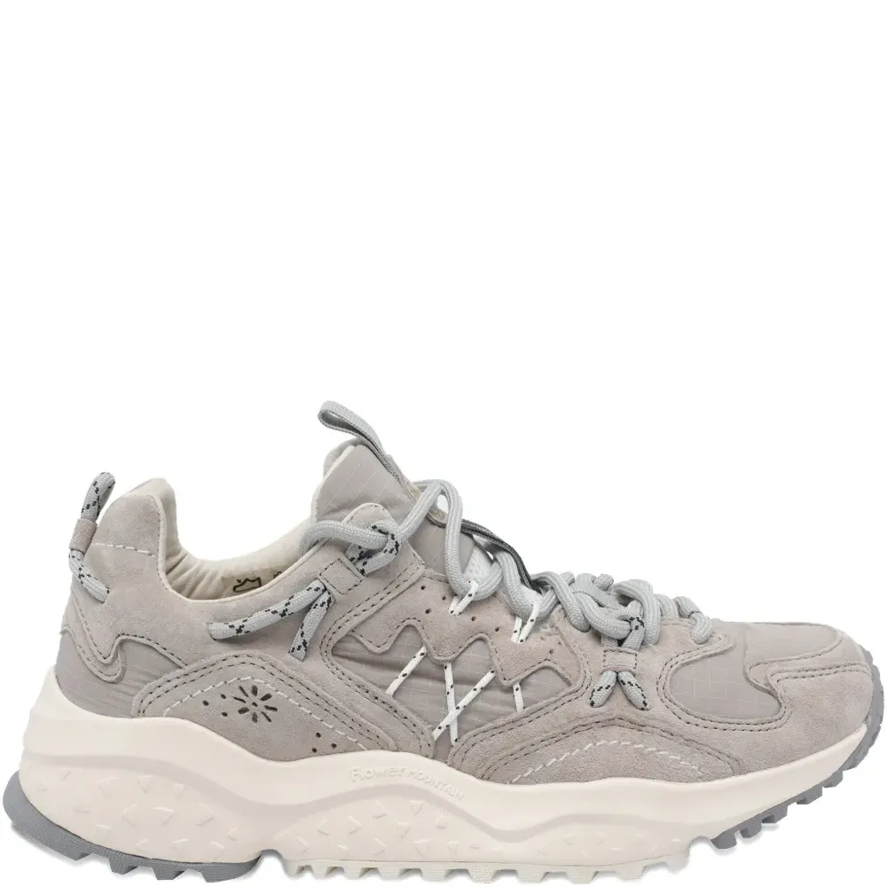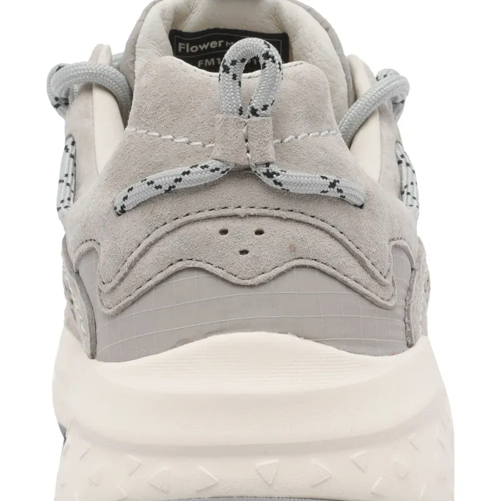 верх из серой замши, шнуровка, круглый носок, резиновая подошва, с отделкой в виде логотипа