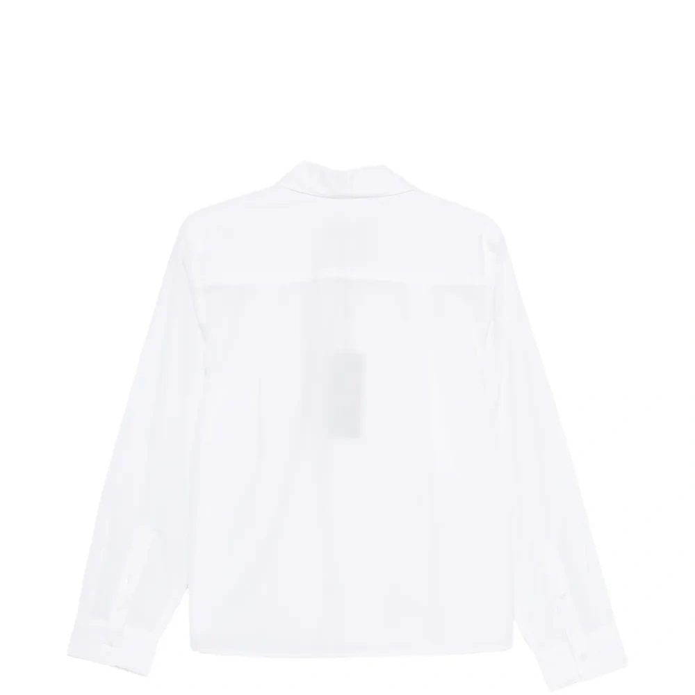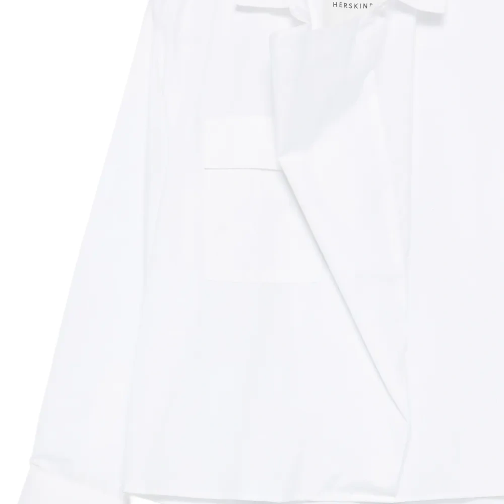 белая рубашка с нагрудным карманом, драпировкой, длинными рукавами и классическим воротником