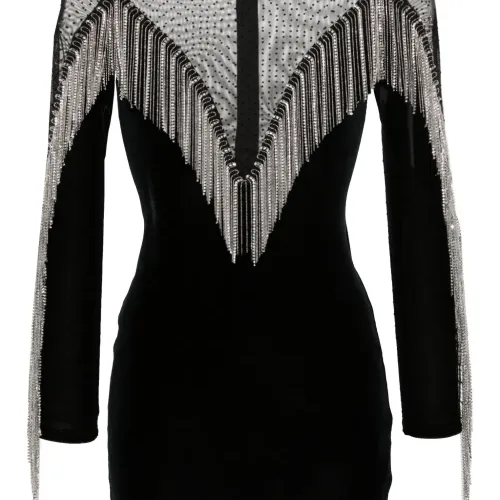 Бархатное платье мини с бахромой