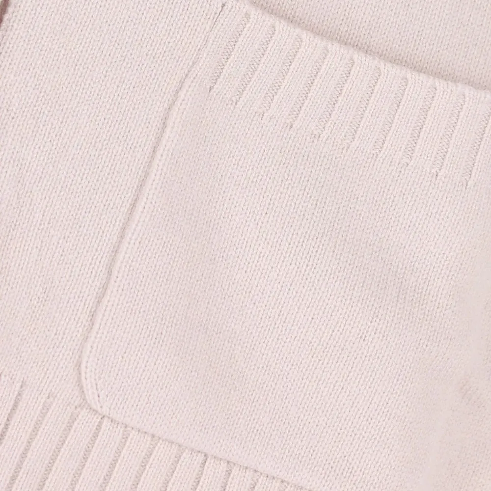 молочно-белый свитер с V-образным вырезом, застёжкой на пуговицы, накладными карманами, ребристым подолом и длинными рукавами