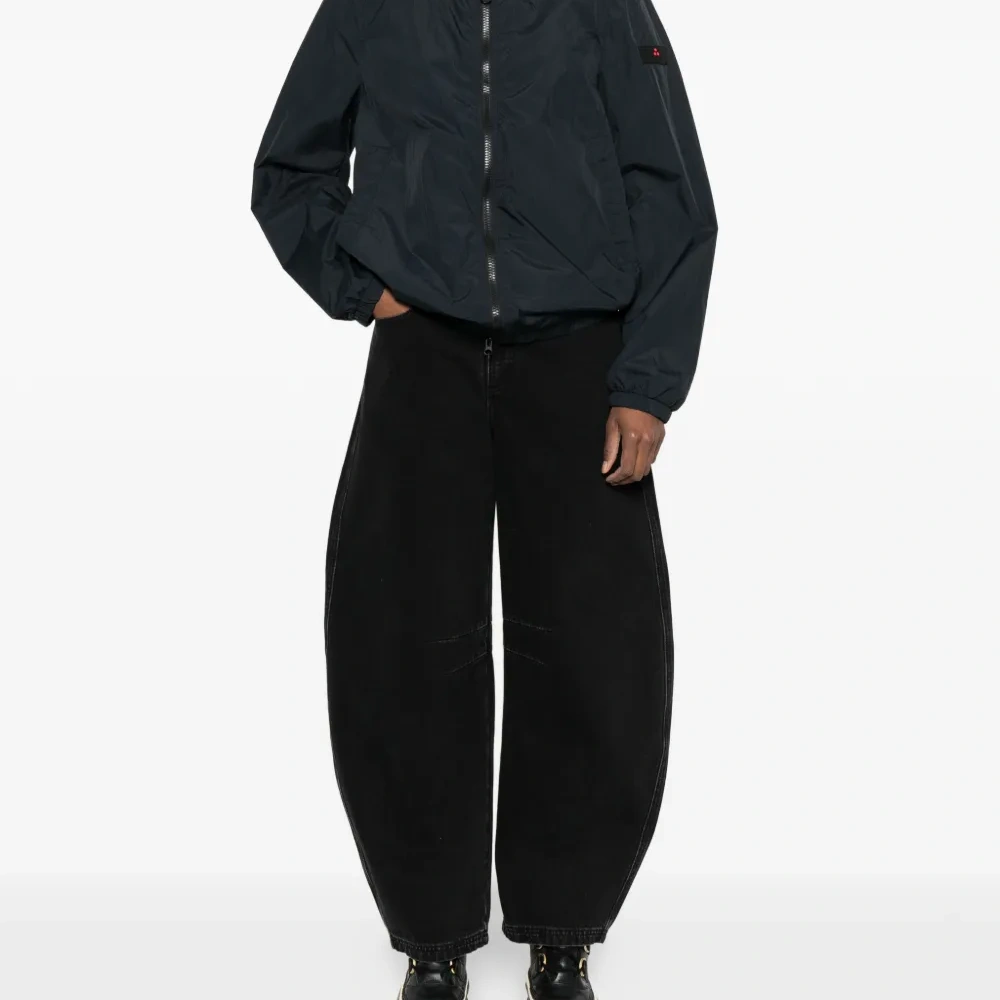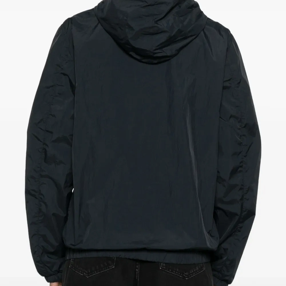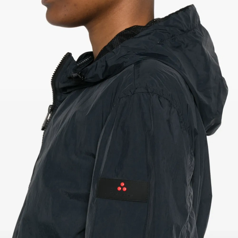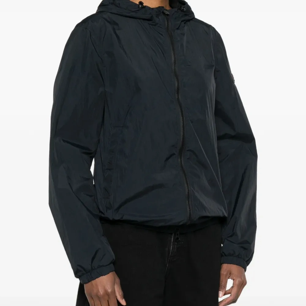 синяя куртка с капюшоном, застёжкой-молнией и длинными рукавами
