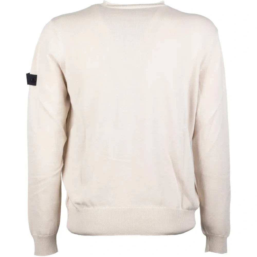 белый трикотажный свитер с нашивкой, ребристым низом, круглым вырезом и длинными рукавами