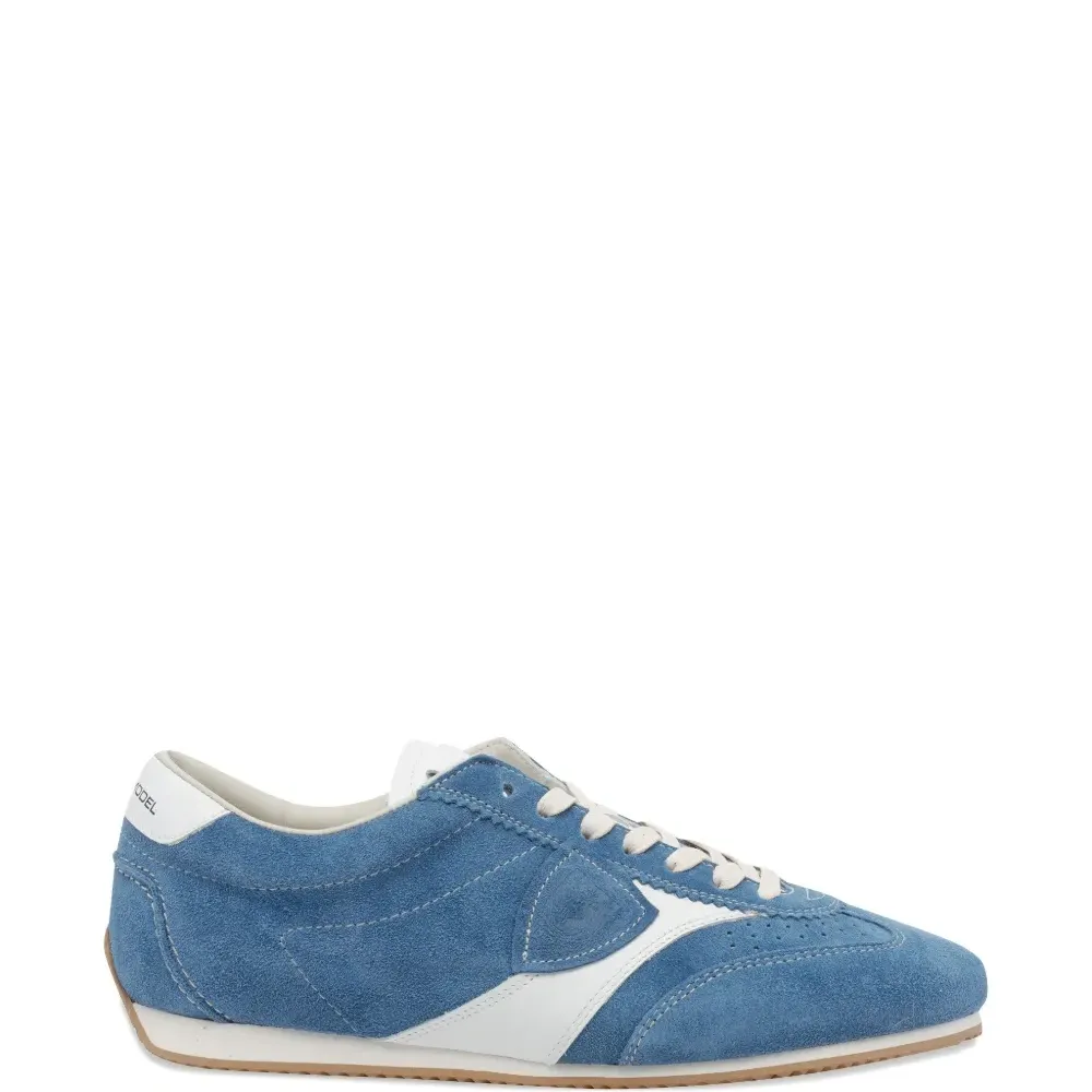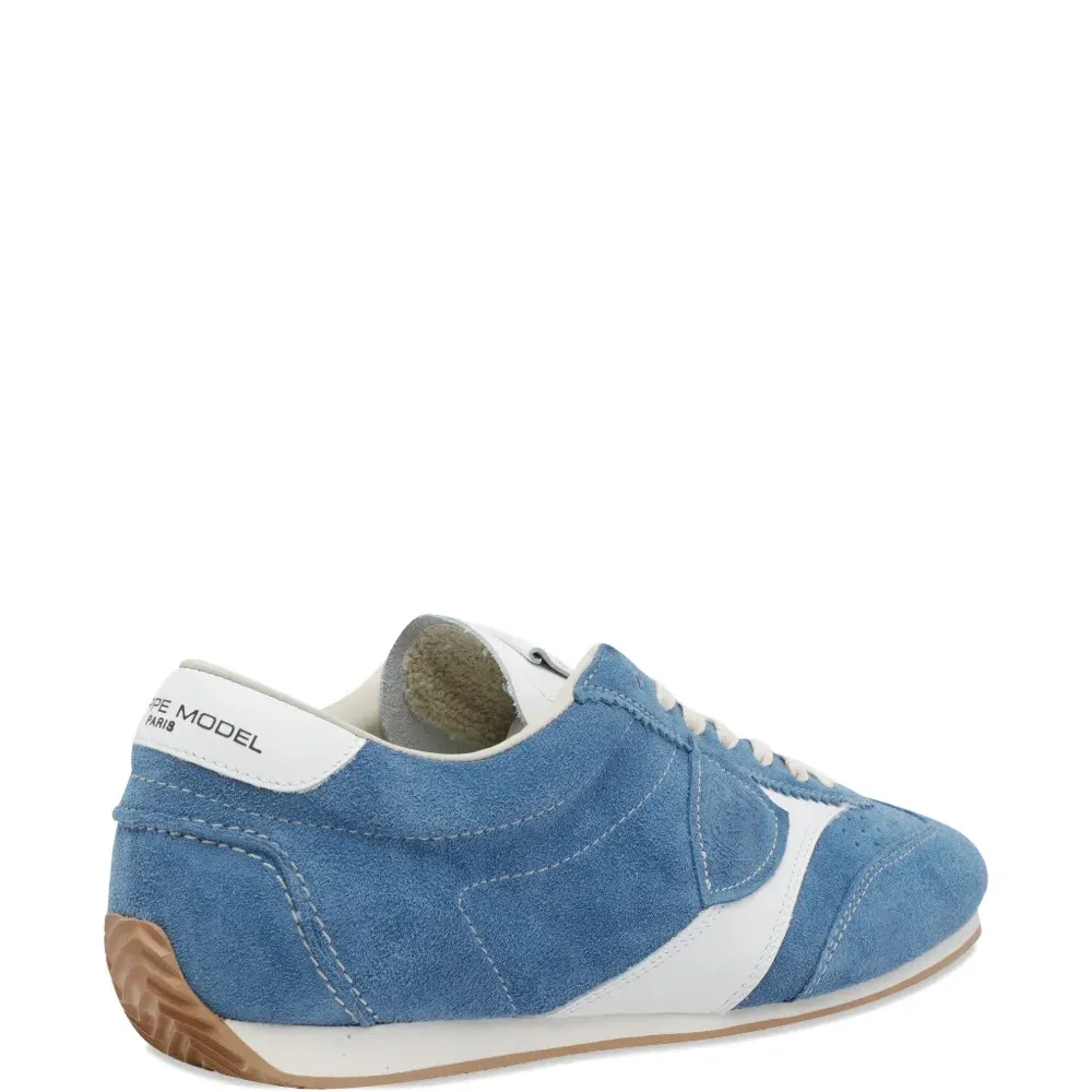 верх из синей замши, круглый нос, логотип сзади, шнуровка, резиновая подошва