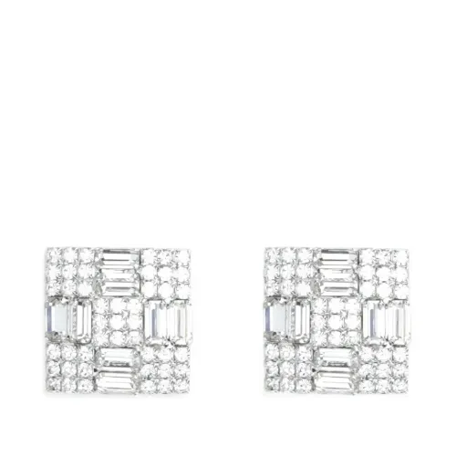 серебристый оттенок, квадратная форма, украшения кристаллами, застёжка-гвоздик. Эти серьги продаются парой.