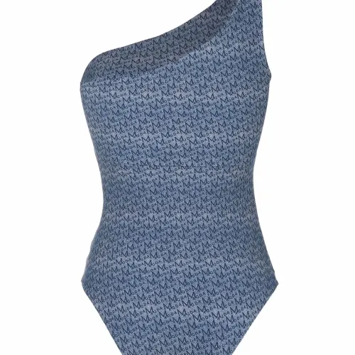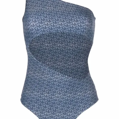 Узор с изображением монограммы, модель на одном плече и без рукавов. Цвет: синий. Пожалуйста, примеряйте купальники и пляжные шорты только поверх собственного белья.