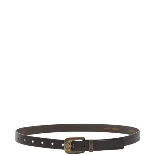 коричневый ремень с эффектом полировки, логотипом и застёжкой-пряжкой