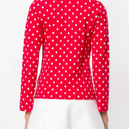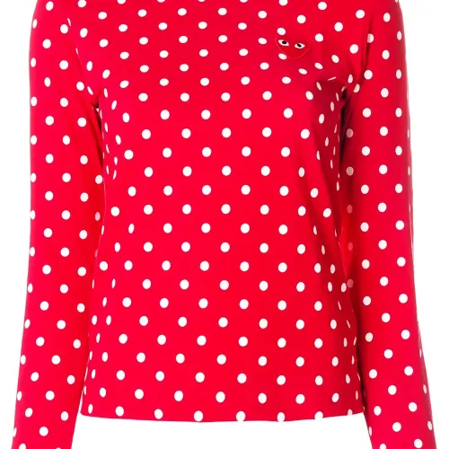 The trademark design of Comme Des Garçon Play’s playful almond-eyed red heart print is camouflaged by the white polka dot design on this red T-shirt, but look closer and see the unmistakable peepers looking out at you. This cotton long sleeve top from Comme Des Garçons Play also features a crew neck and a straight hem.