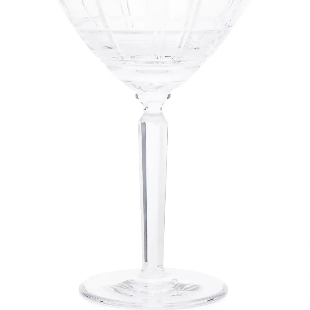 Стекло, прозрачный материал, глянцевая фактура, геометрическая форма, детали в рубчик, скругленные углы и дизайн с открытым верхом.