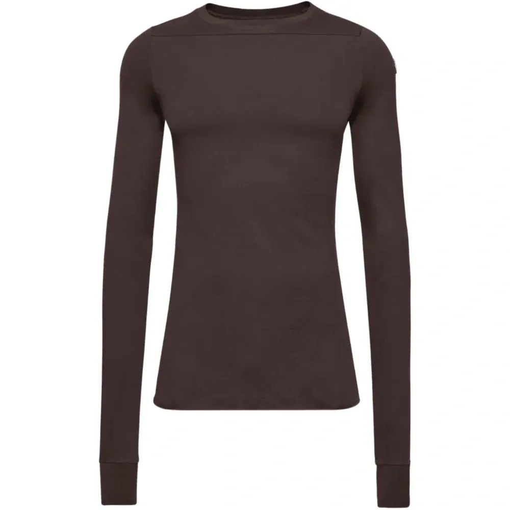 коричневый свитшот с круглым вырезом, длинными рукавами и нашивкой с логотипом