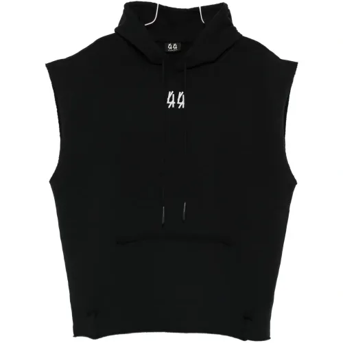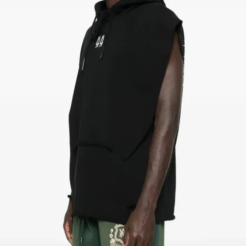 черная худи без рукавов с необработанным краем, логотипом и завязками
