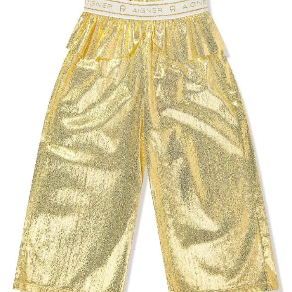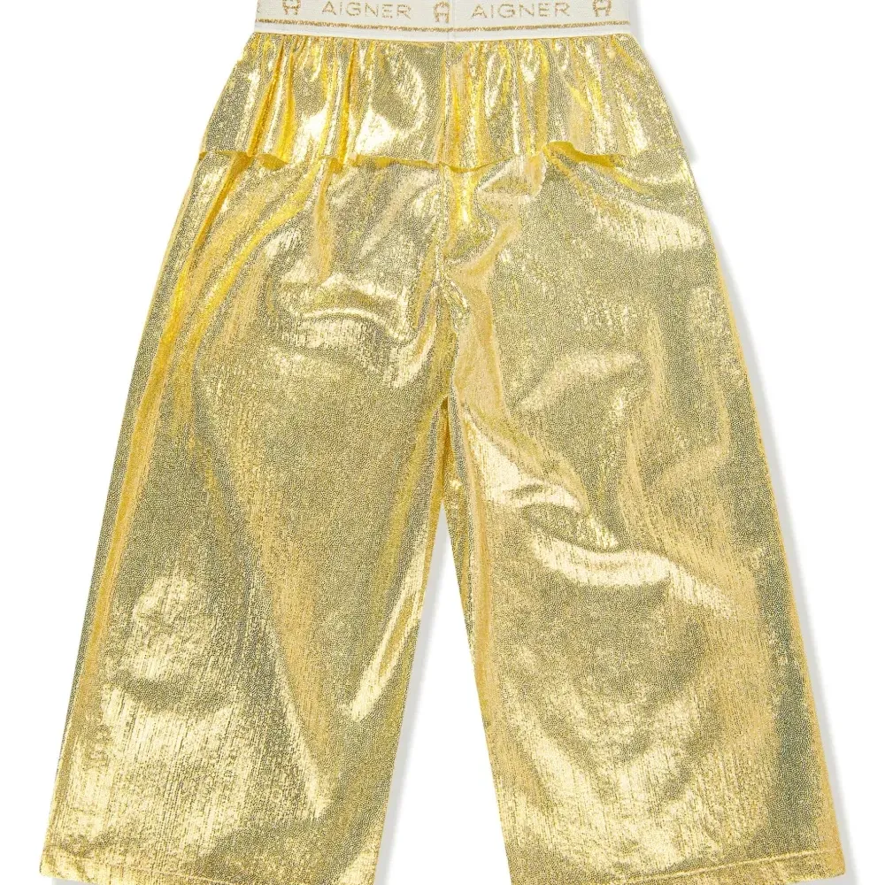 Брюки с баской и эффектом металлик