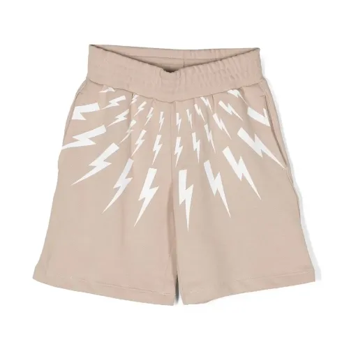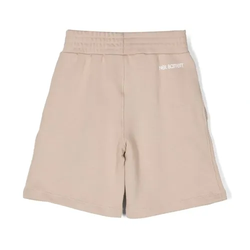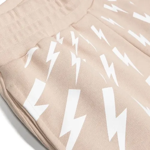 Бежевый, хлопок, графичный принт на спине, логотип спереди и эластичный пояс.