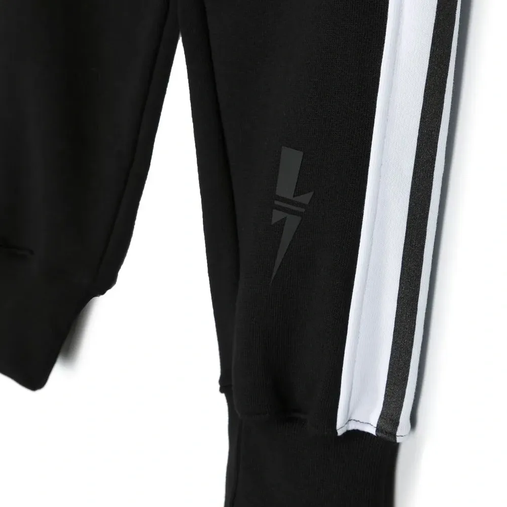 Полоска сбоку, принт с логотипом сзади, принт Thunderbolt, эластичный пояс и передние карманы на молнии.
