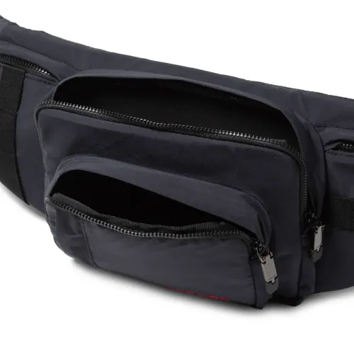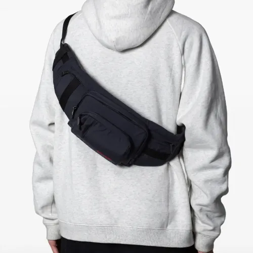 чёрный цвет, застёжка-молния, передний карман, регулируемый ремень с пряжкой, вышитый логотип