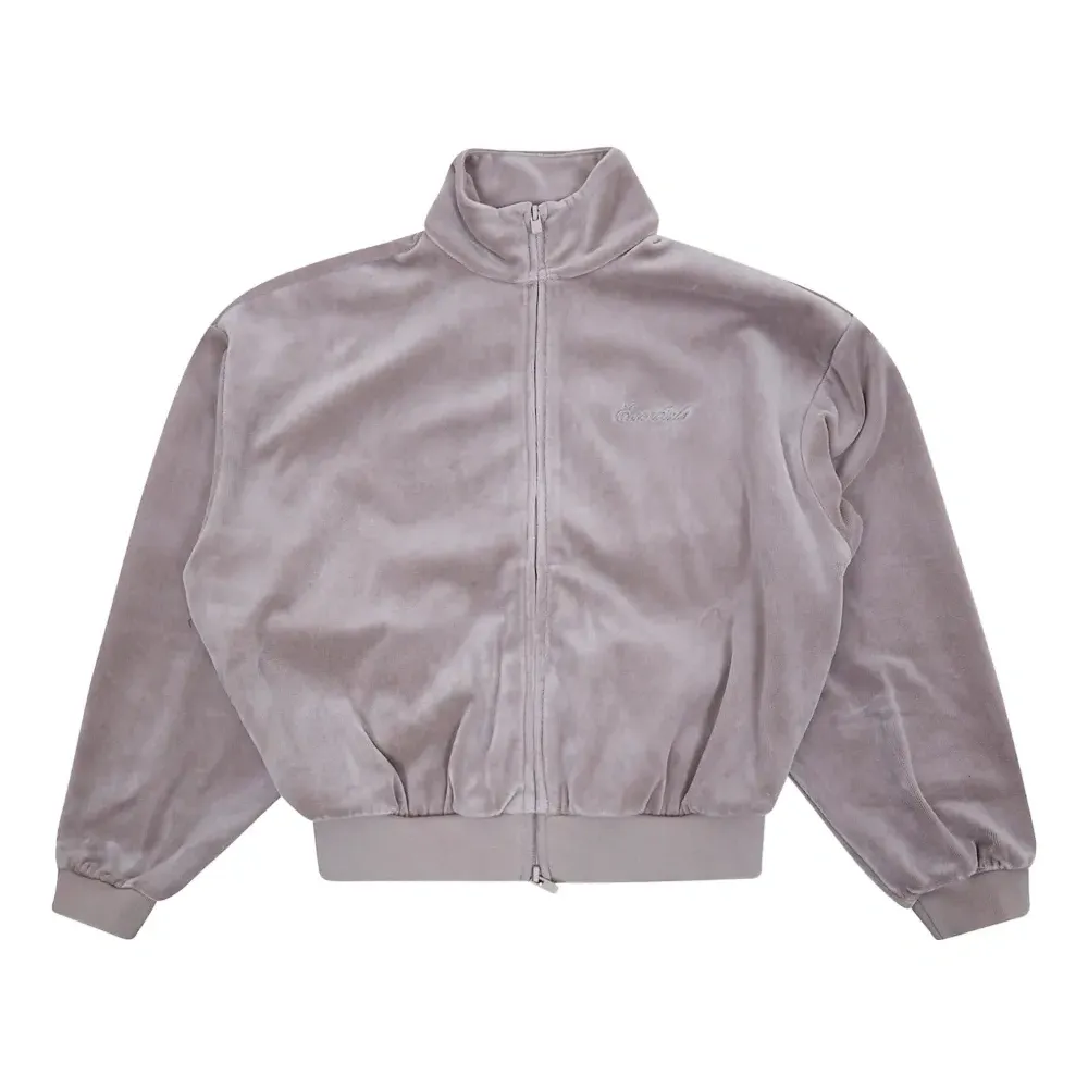 дымчато-серый цвет, вышитые детали, застежка-молния, эластичный низ, высокий воротник, длинные рукава