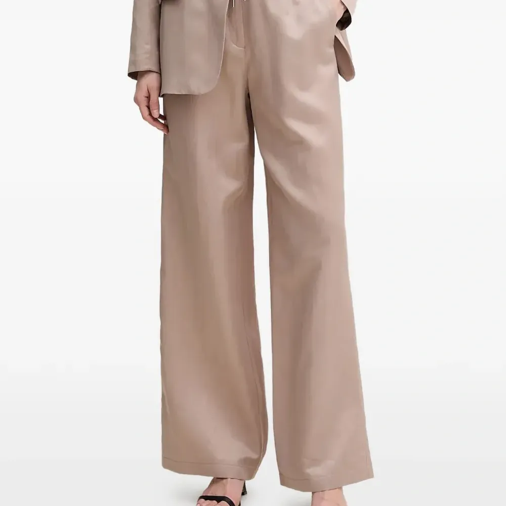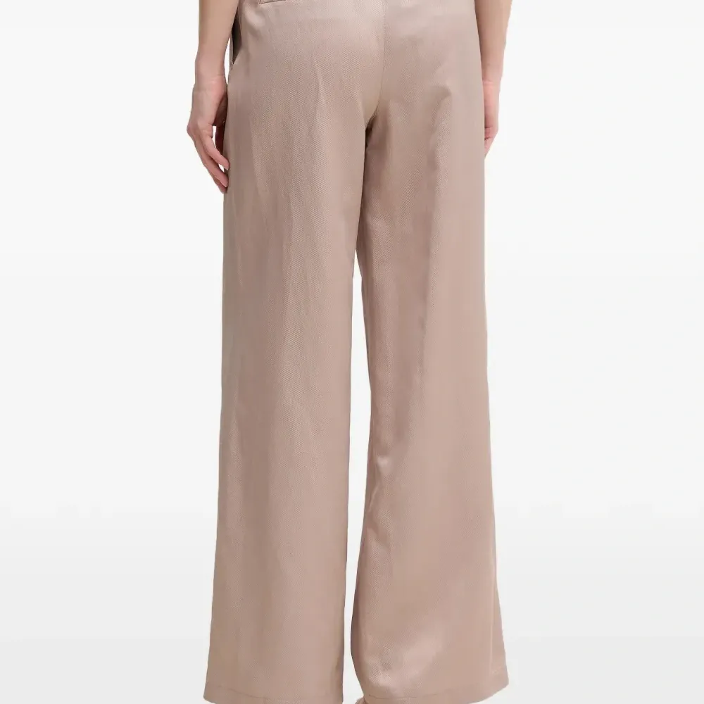 коричневые широкие брюки с кулиской, двумя пуговицами, эластичным поясом и задним прорезным карманом