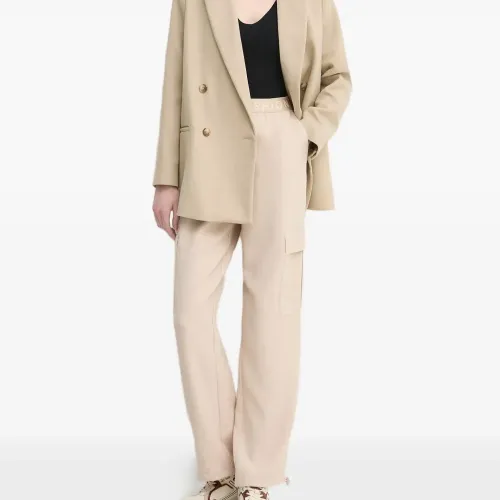 бежевые прямые брюки с эластичным поясом, свободного кроя, с тональной прострочкой