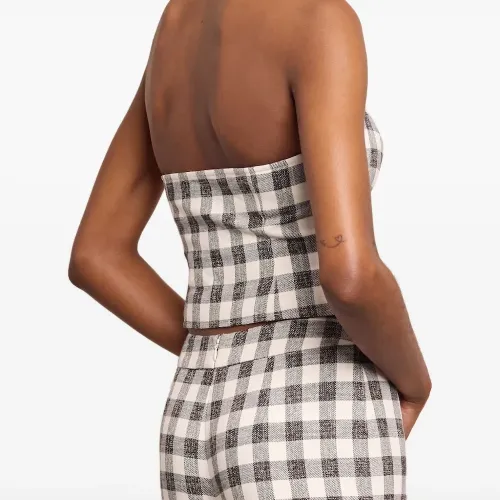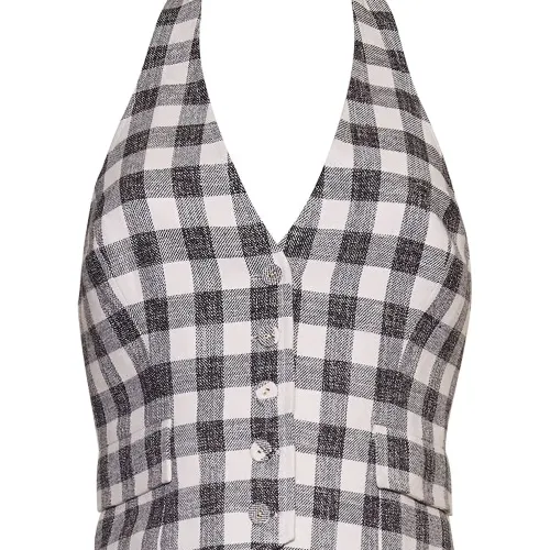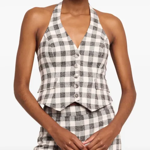 Жилет в клетку гингем с вырезом халтер