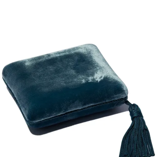 Темно-синий, бархатный эффект и декоративные кисточки.