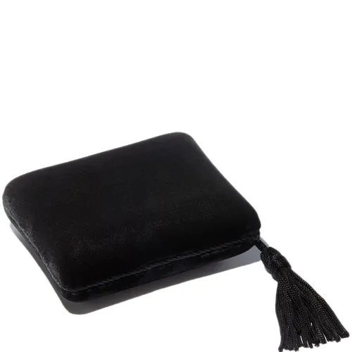 Черный, бархатный эффект и декоративные кисточки.