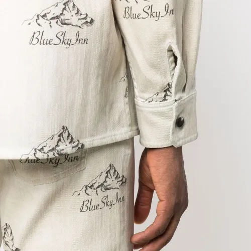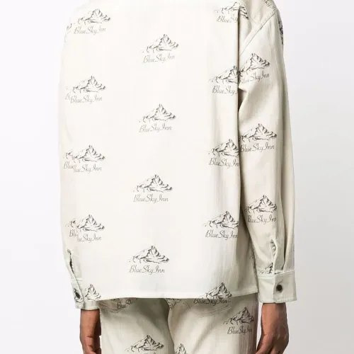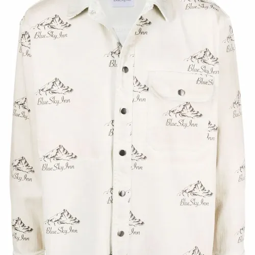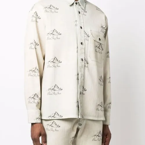 Сплошной принт с логотипом, застежка на пуговицах спереди, классический воротник, нагрудный накладной карман и длинные рукава.