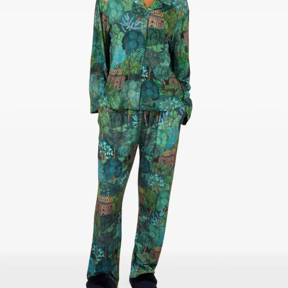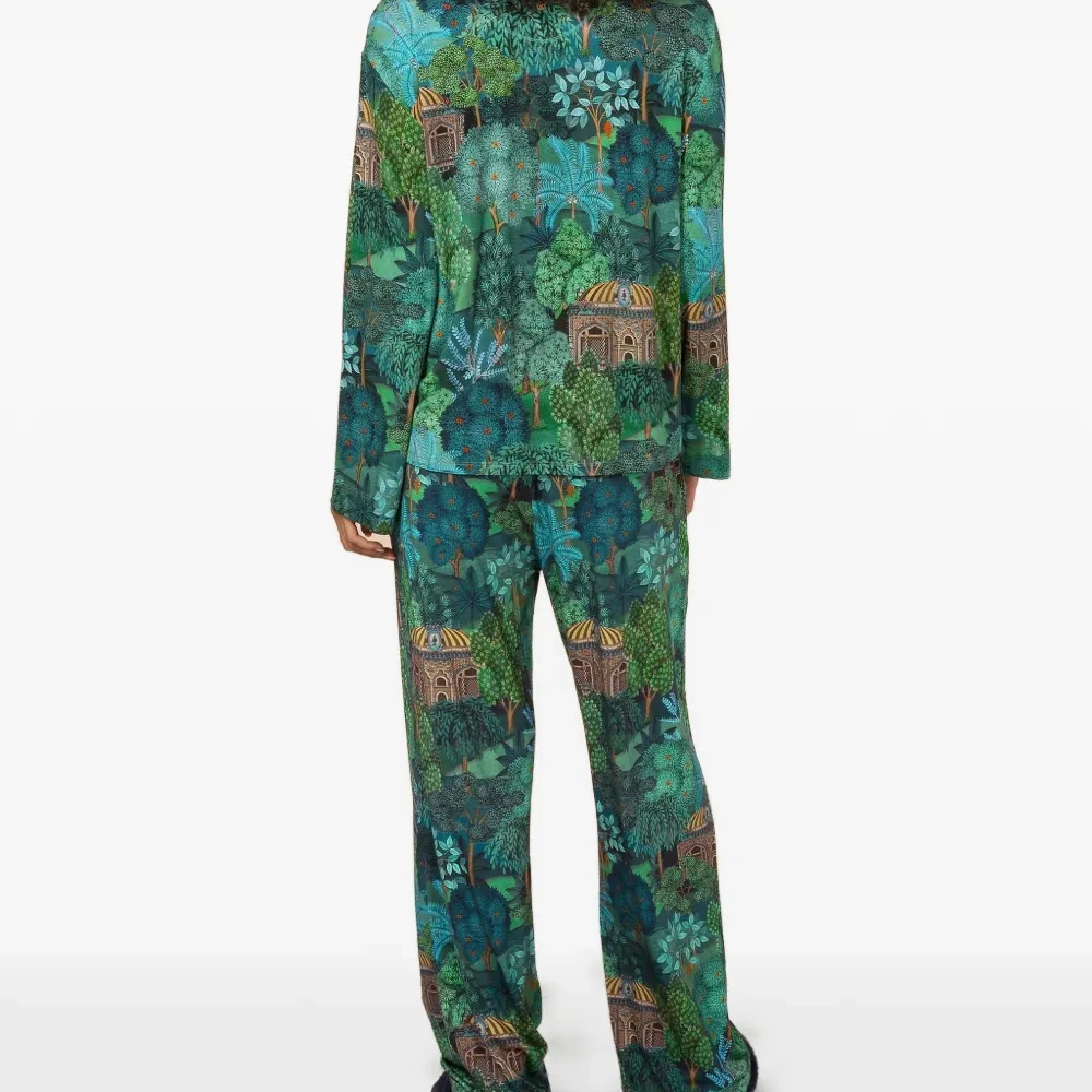 зеленый принт по всей поверхности, длинные рукава, застежка на пуговицы