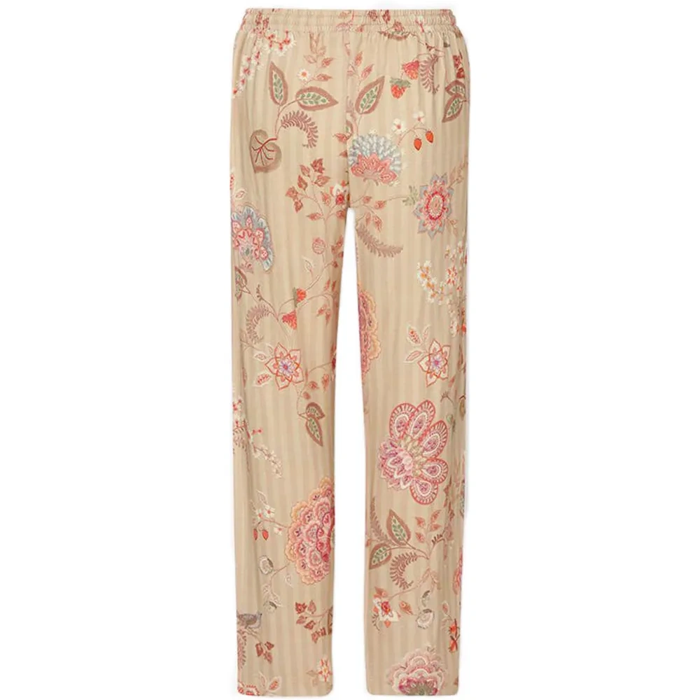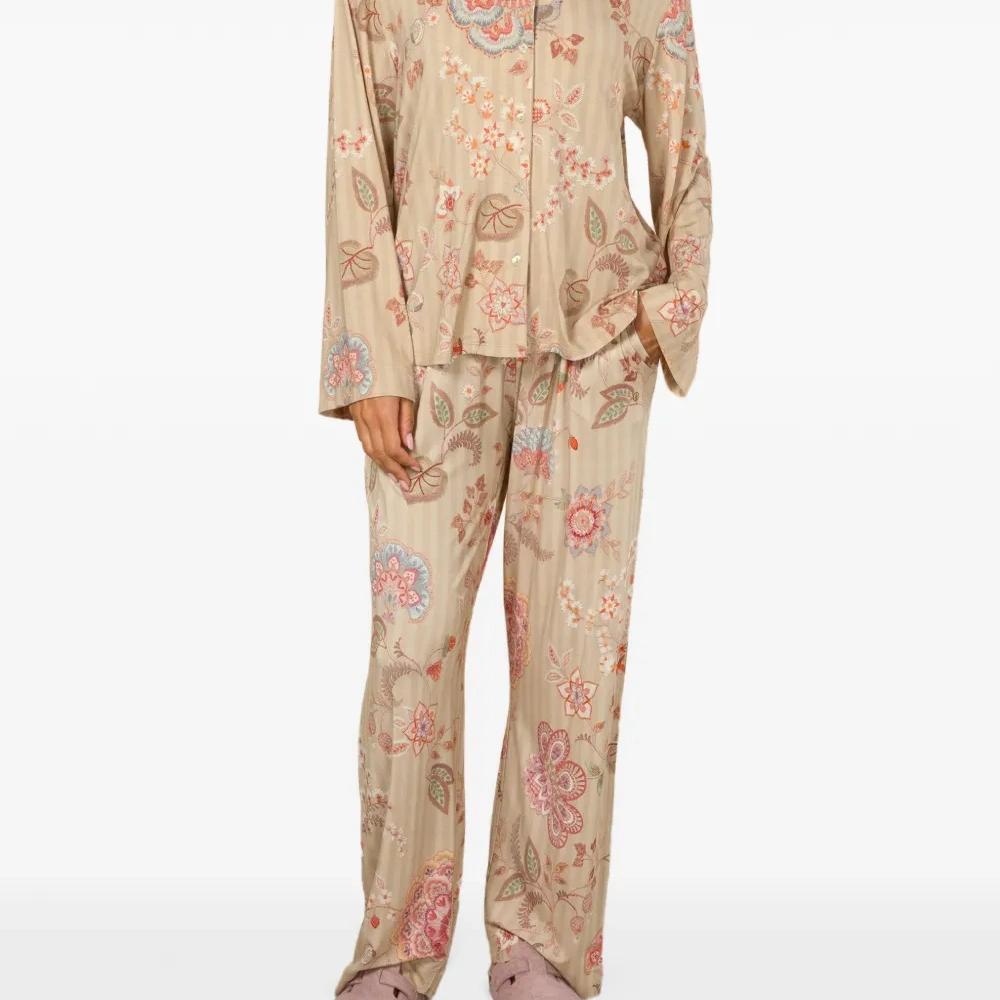 светло-коричневый с цветочным принтом и полосатым узором, застежка на кулиску, эластичный пояс