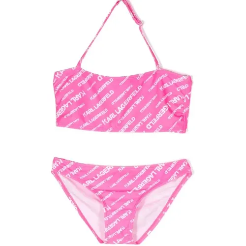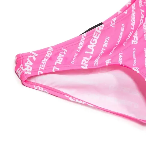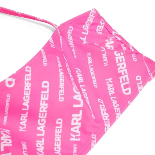 Розовый, белый, модель из двух частей, сплошной принт с логотипом, модель бандо, вырез-петля халтер и классические плавки бикини. Пожалуйста, примеряйте купальники и пляжные шорты только поверх собственного белья.