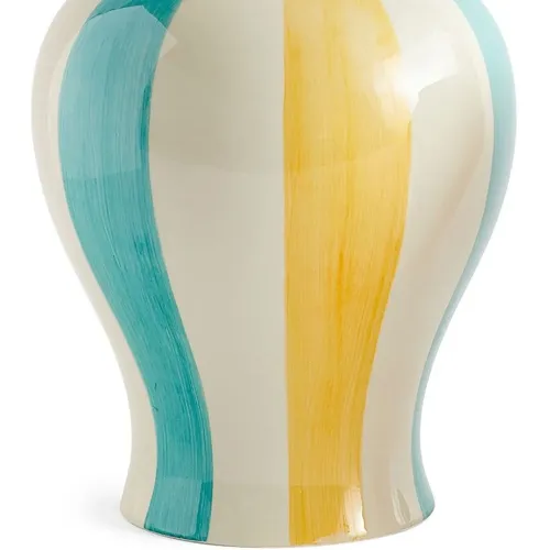 Сине-зеленый, белый, желтый, фарфор, лакированное покрытие, узор в вертикальную полоску и ручная роспись.