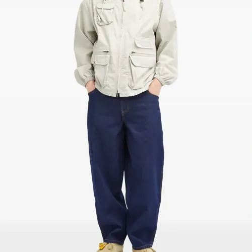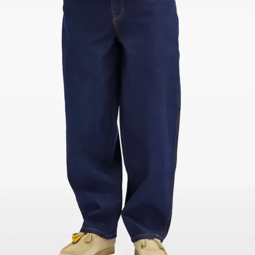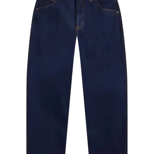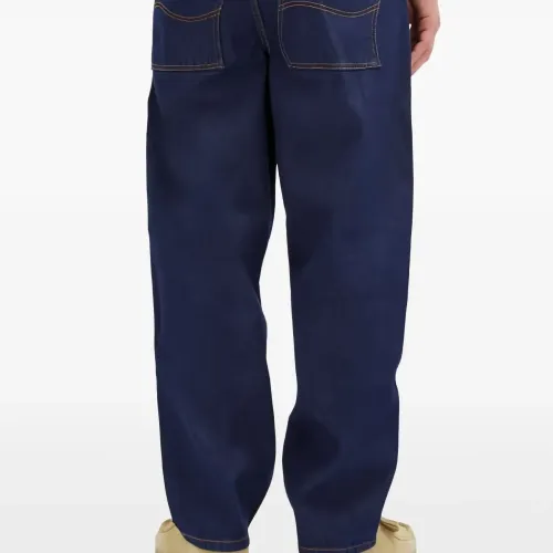 индиго синий классический свободный крой классические пять карманов вышитый логотип оранжевая отделочная строчка