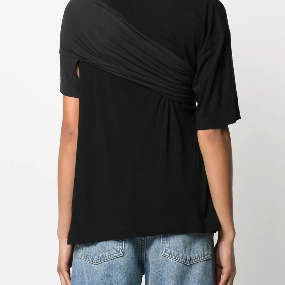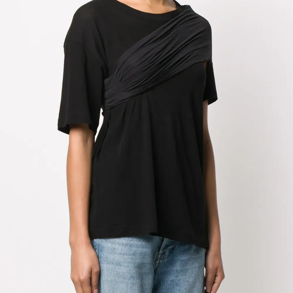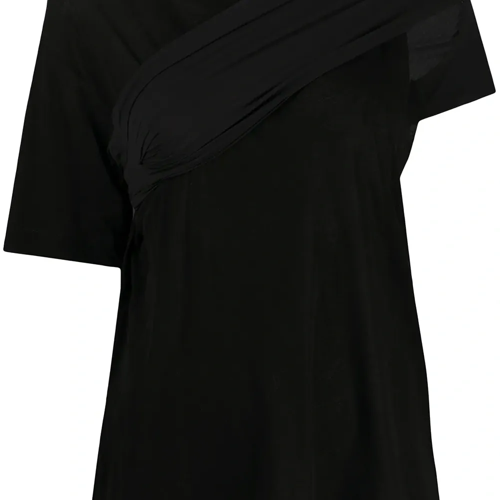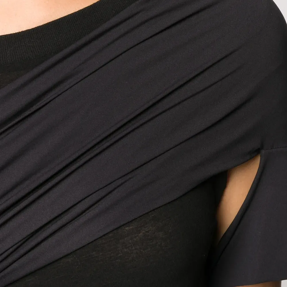 Футболка асимметричного кроя от Unravel Project. Круглый вырез, короткие асимметричные рукава и отрезная деталь. Цвет: черный.