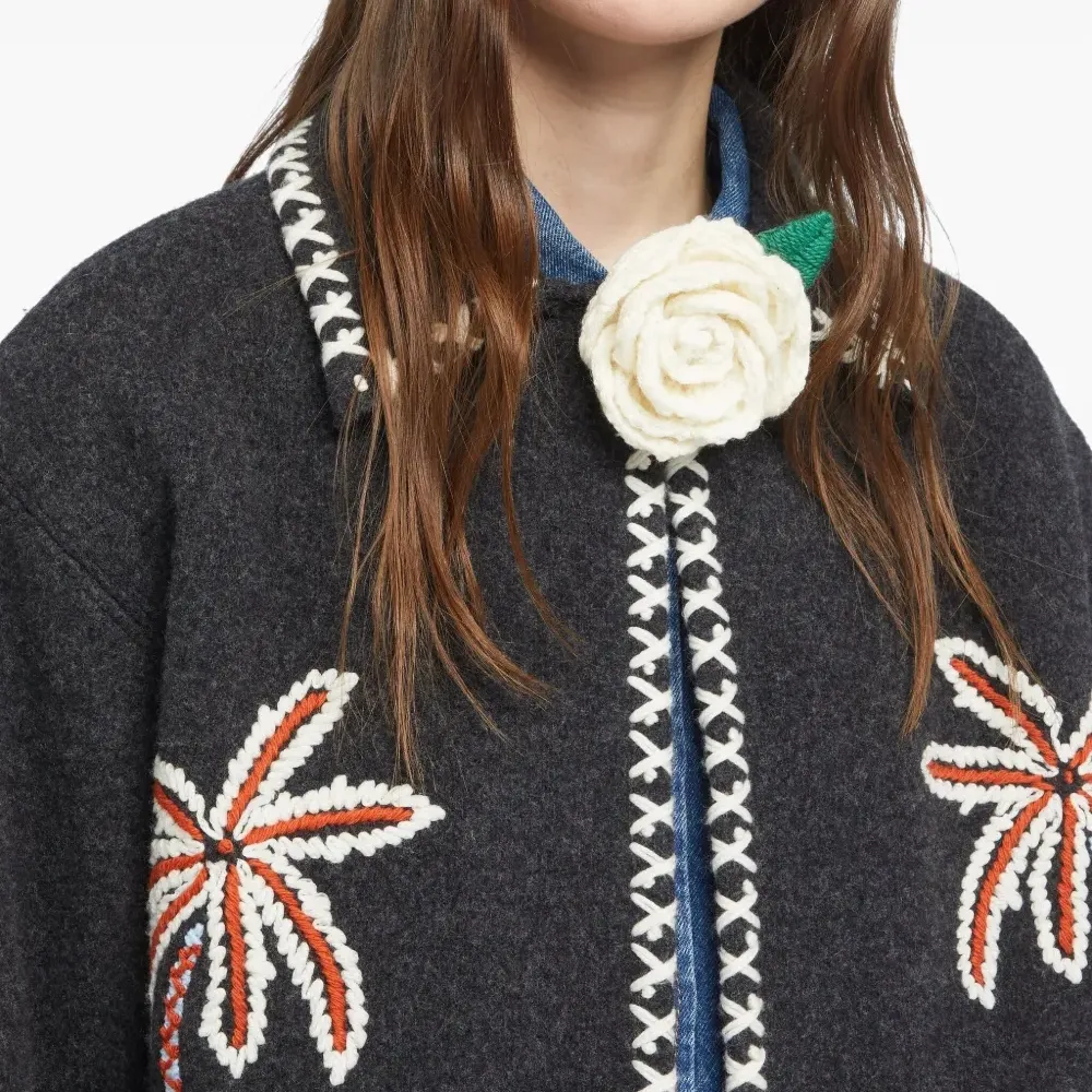 брошь с цветочной вышивкой