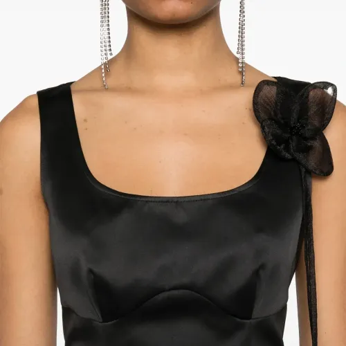 Атласное платье с цветочной аппликацией