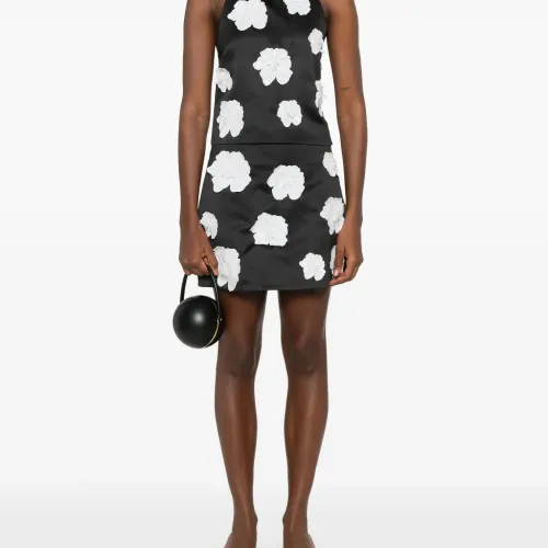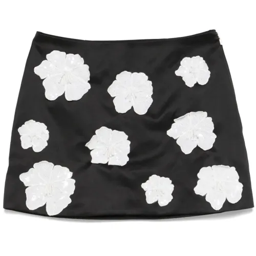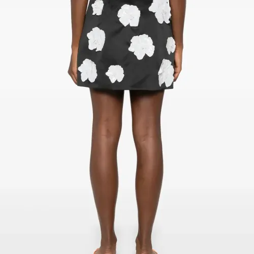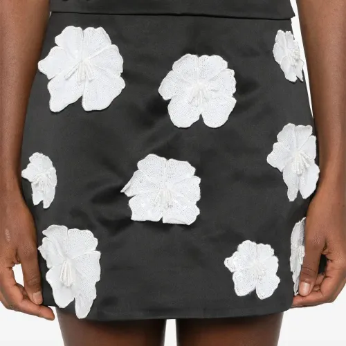 Атласная юбка мини с цветочной аппликацией