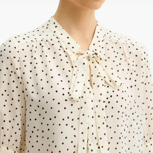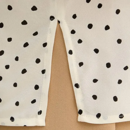 Кремовое платье в горох с завязками, короткими рукавами и разрезом сзади
