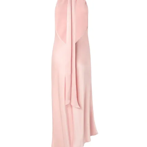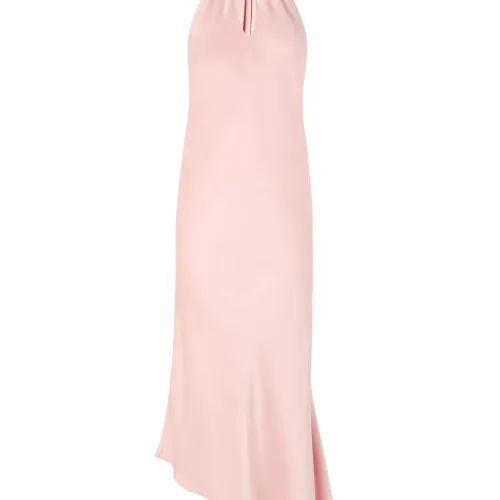 розовый топ с воротником-халтер, асимметричным подолом, завязками, золотистой фурнитурой, без рукавов