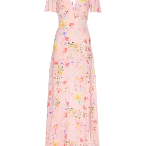 Платье макси с V-образным вырезом и цветочным принтом