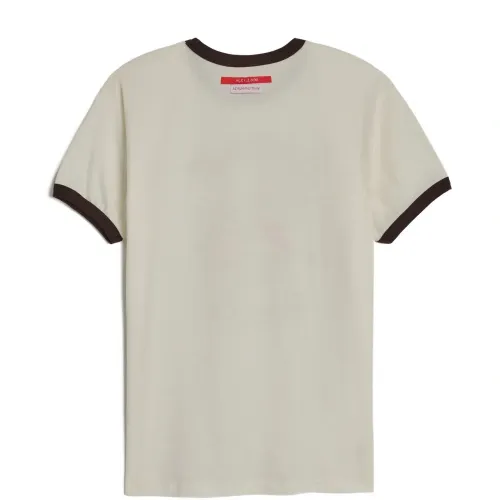 белая хлопковая футболка с графическим принтом, круглым вырезом, короткими рукавами и контрастной отделкой в рубчик