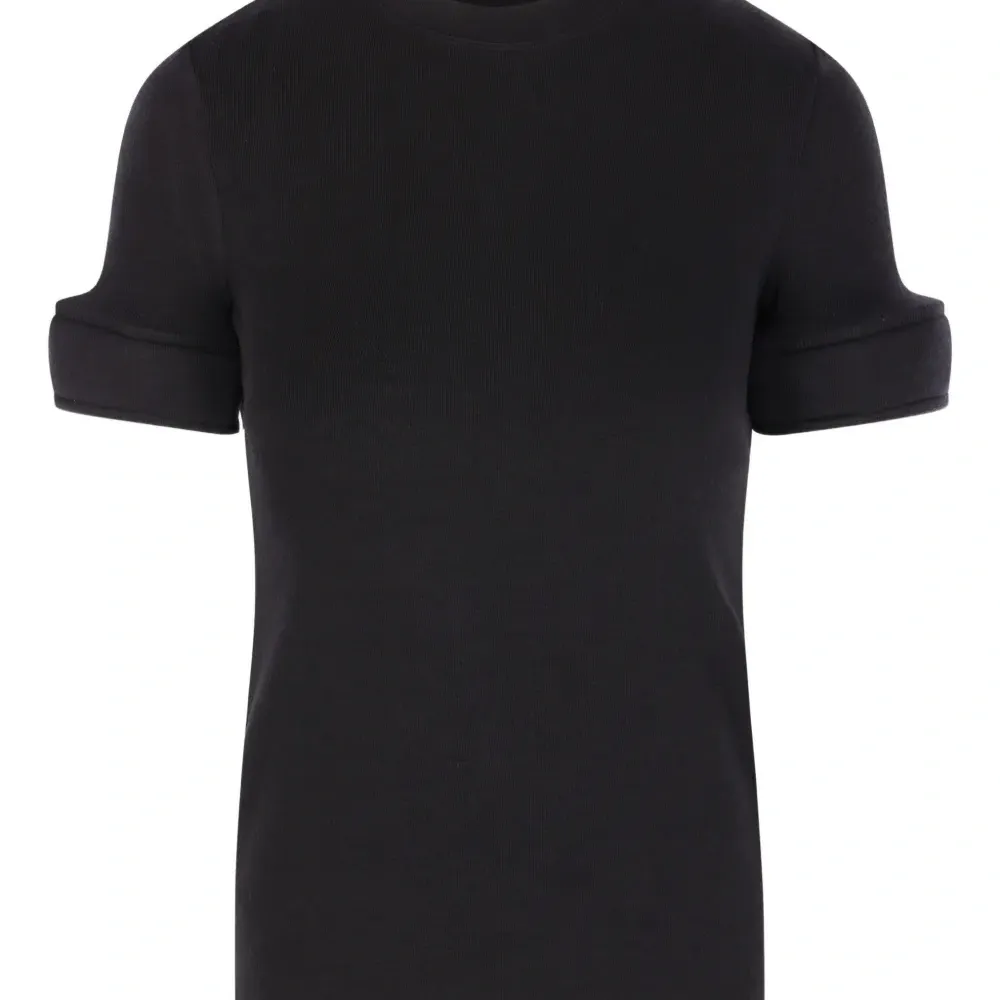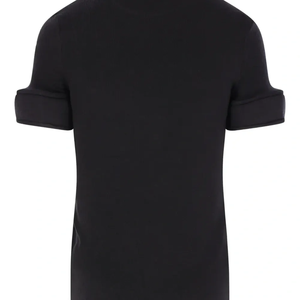 чёрная футболка с круглым вырезом, короткими рукавами и манжетами из поролона
