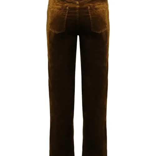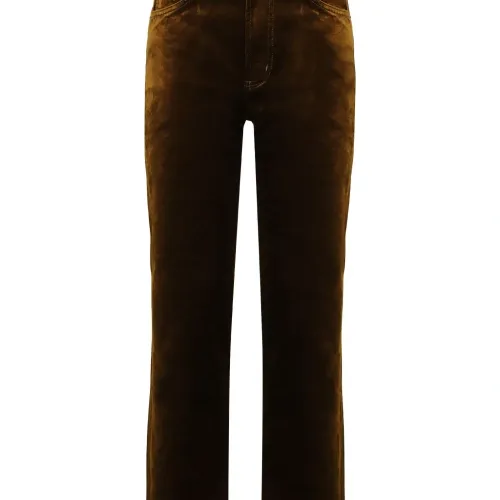 оливково-зеленый бархат, пять карманов, застежка на молнию и пуговицу, высокая посадка