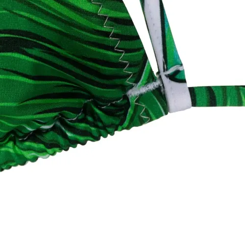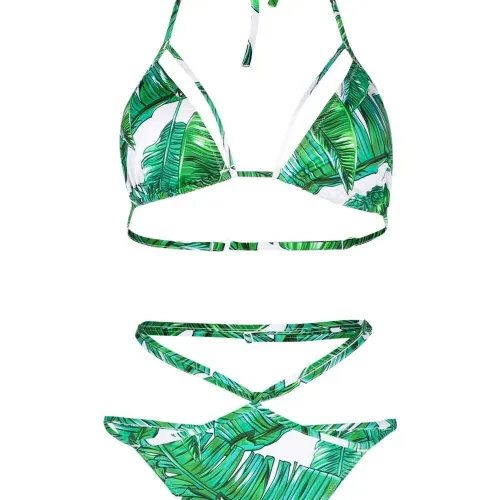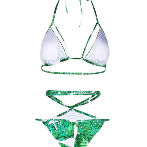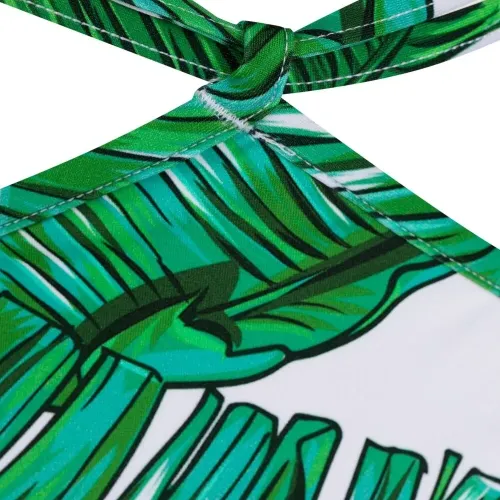 Принт с изображением листьев, ремешки, вырез-петля халтер, застежка на завязке сзади, принт с изображением листьев, ремешки, завышенная талия и модель без застежки. Пожалуйста, примеряйте купальники и пляжные шорты только поверх собственного белья.