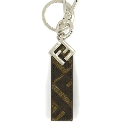 коричневое квадратное металлическое украшение с логотипом и застёжкой-клипсой