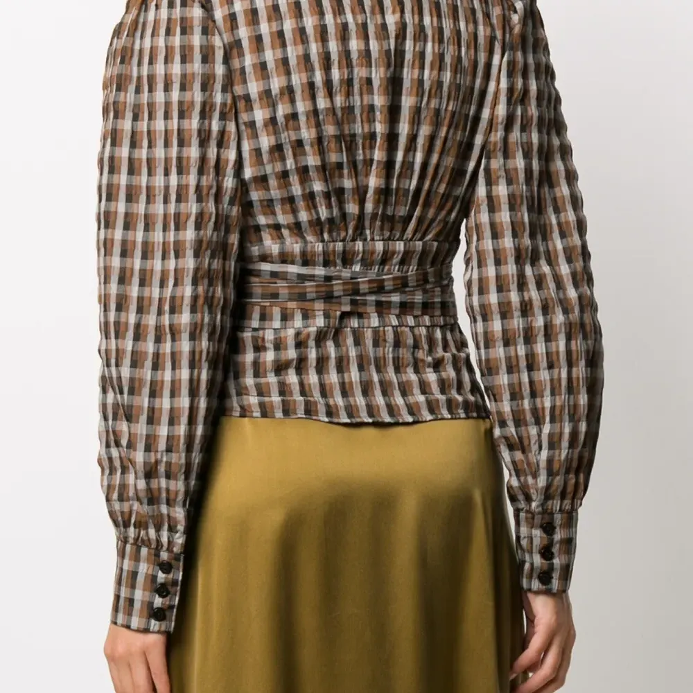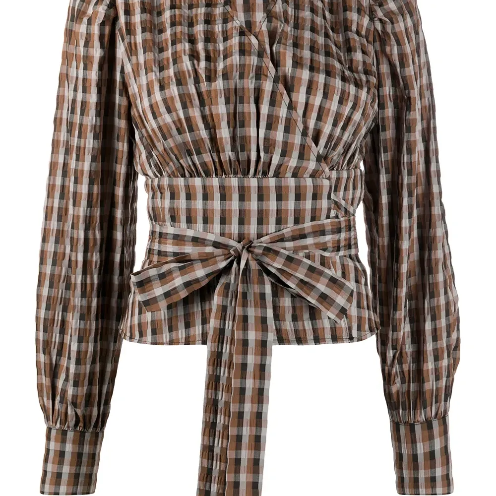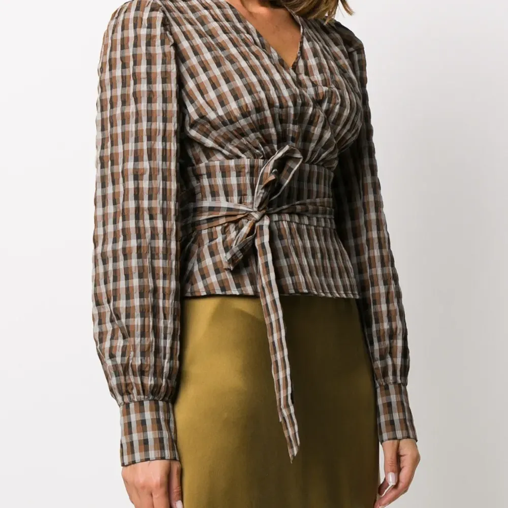 Блузка в клетку гингем с запахом