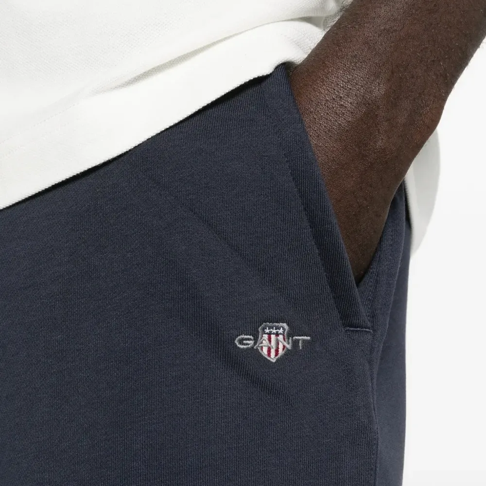 синий цвет, детали с логотипом, боковые карманы, эластичный пояс, тональная строчка