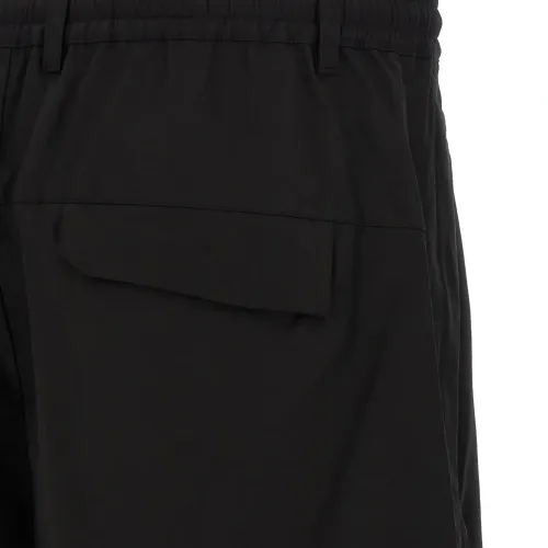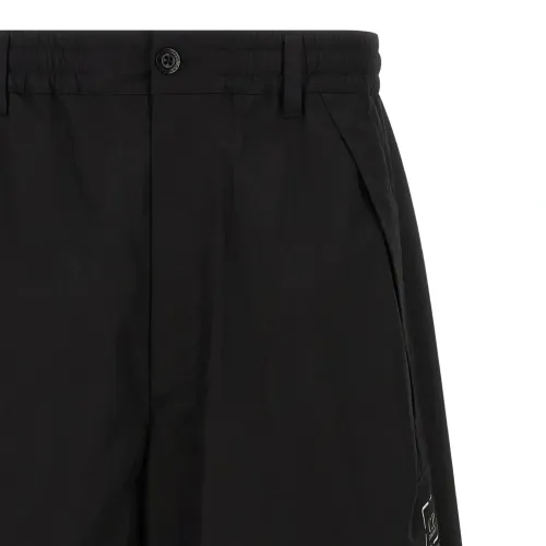 чёрные с принтом логотипа, эластичный пояс, застёжка-молния, застёжка на пуговицу, карманы